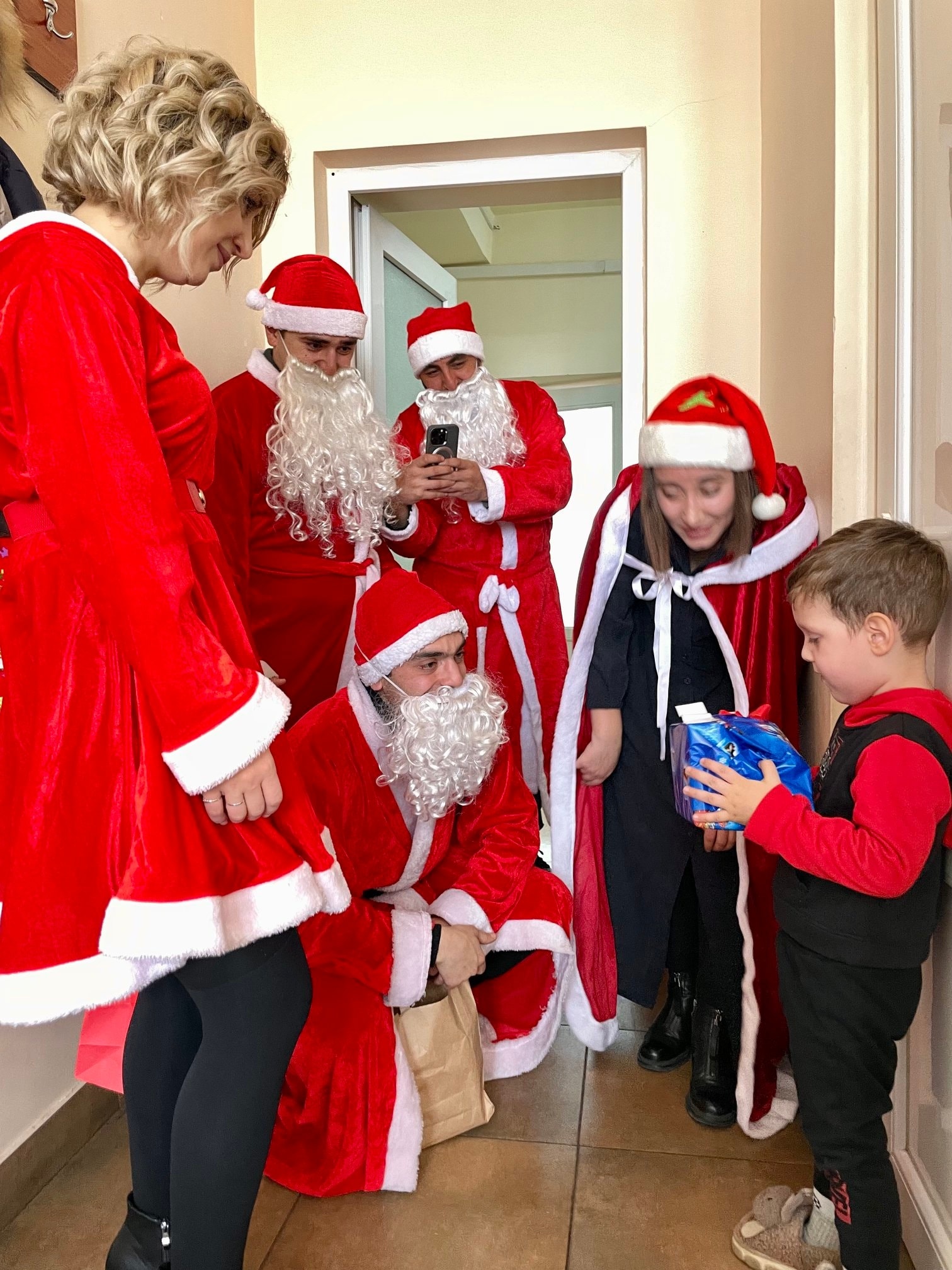 Միջոցառման ամենասպասված պահերից էր, երբ տանիքից իջնող Ձմեռ պապերը երեխաներին հանձնեցին նվերներն ու փոխանցեցին իրենց սերն ու բարեմաղթանքները։