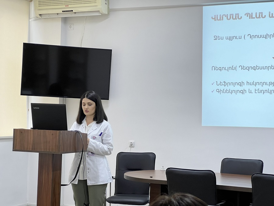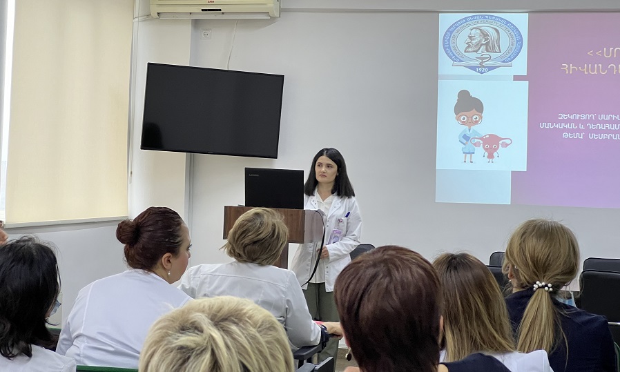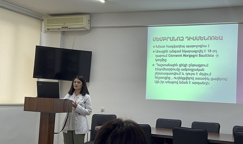 Գիտագործնական կոնֆերանսին «Մուրացան» համալիրի գինեկոլոգ Մարիամ Մնացականյանը կլինիկական դեպք է ներկայացրել: Թեման էր մեմբրանոզ դիսմենոռեա: